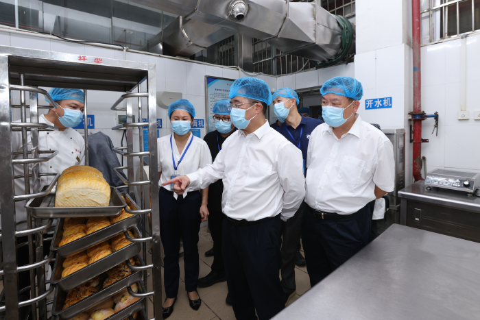 检查组一行深入实验室、学生宿舍、学生食堂、教学楼及交通要道,针对消防设施配备、危化品管理、食品加工流程等关键环节展开细致核查。在实验室区域,检查组重点检查了危化品存储柜的温控系统及应急处置预案;食堂检查中,依据国家市场监督管理总局“五个到位”原则,对食材采购溯源、餐具消毒记录及后厨操作规范进行检查,确保食品安全“零隐患”。